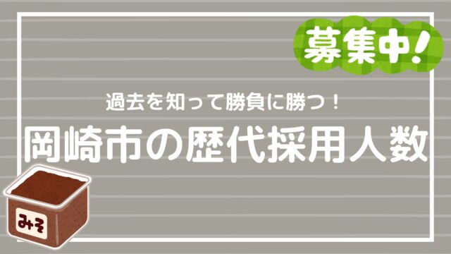 中核市シリーズ 【岡崎市:採用人数と募集職種】2020年(令和2年度)から現在まで 2026年5月1日 akazukin https://akazukinkun.com/wp-content/uploads/2024/02/トップヘッダー.jpg 赤ずきんくんのみんなで公務員になろう