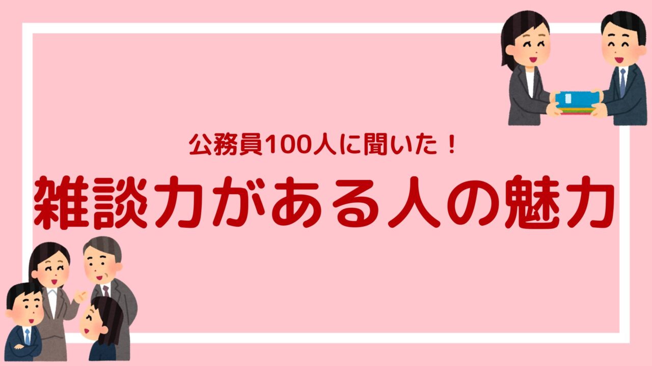 今回、公務員100人にアンケートを実施し、雑談力のある人に惹かれる理由と、具体的な魅力を徹底解剖した。